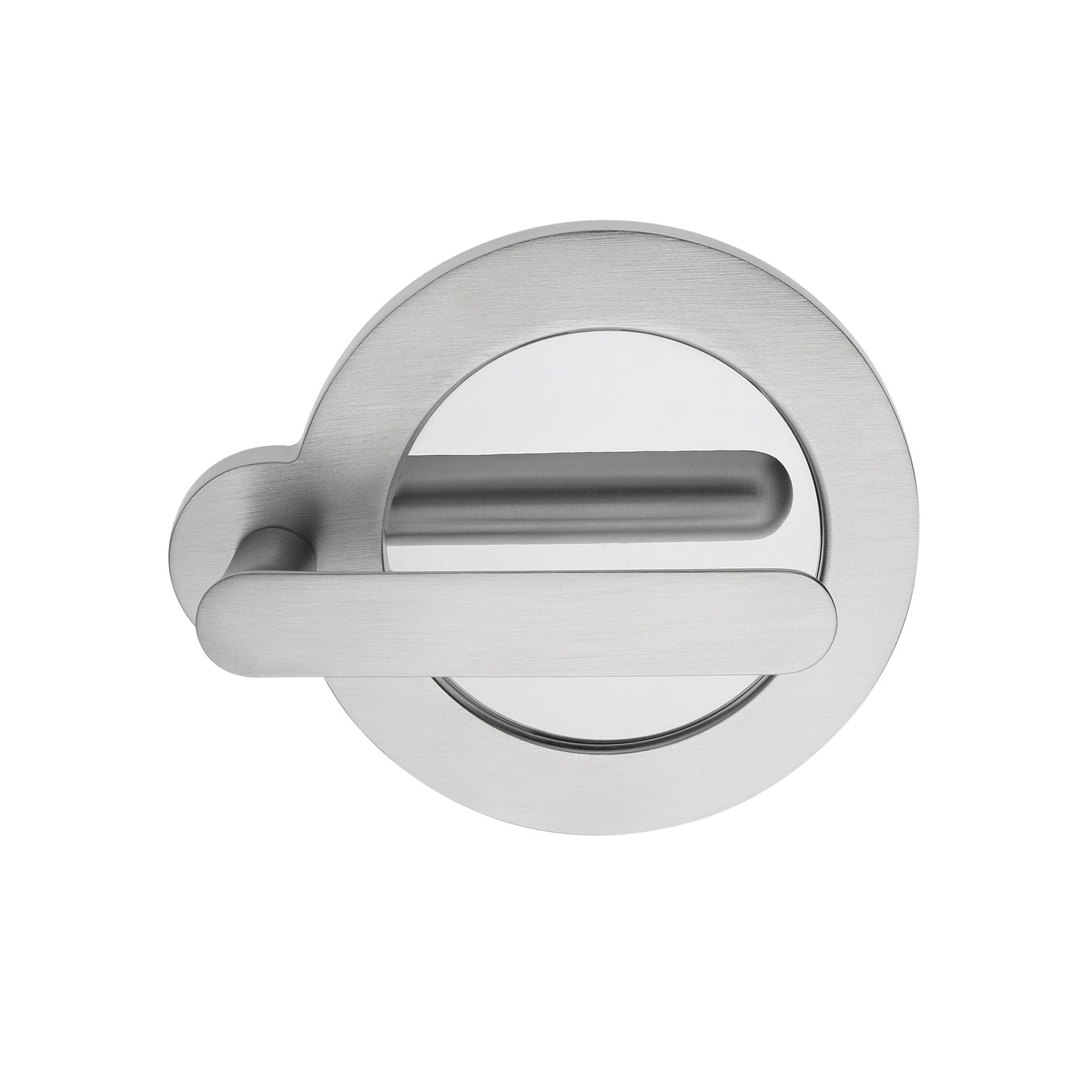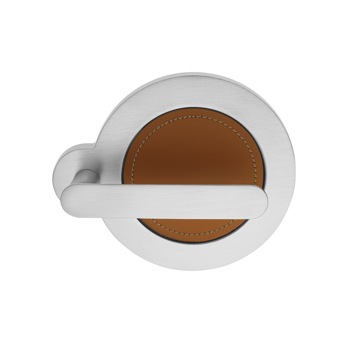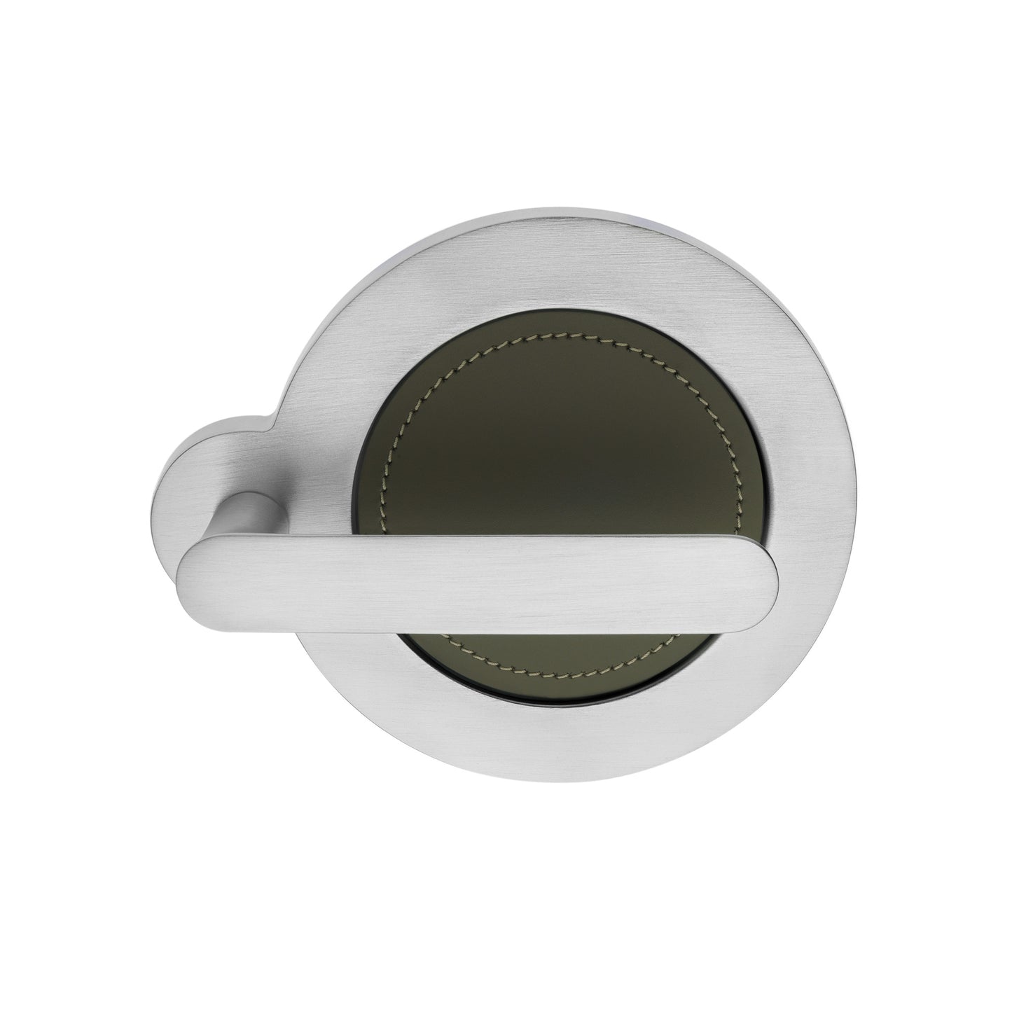 Saturn è una maniglia ideata per porte di ampie dimensioni. Si distingue per le misure importanti della rosetta composta da due dischi, uno esterno, da cui si sviluppa una piccola estensione a semicerchio e a cui è applicata la maniglia, e uno interno, personalizzabile in varie finiture.