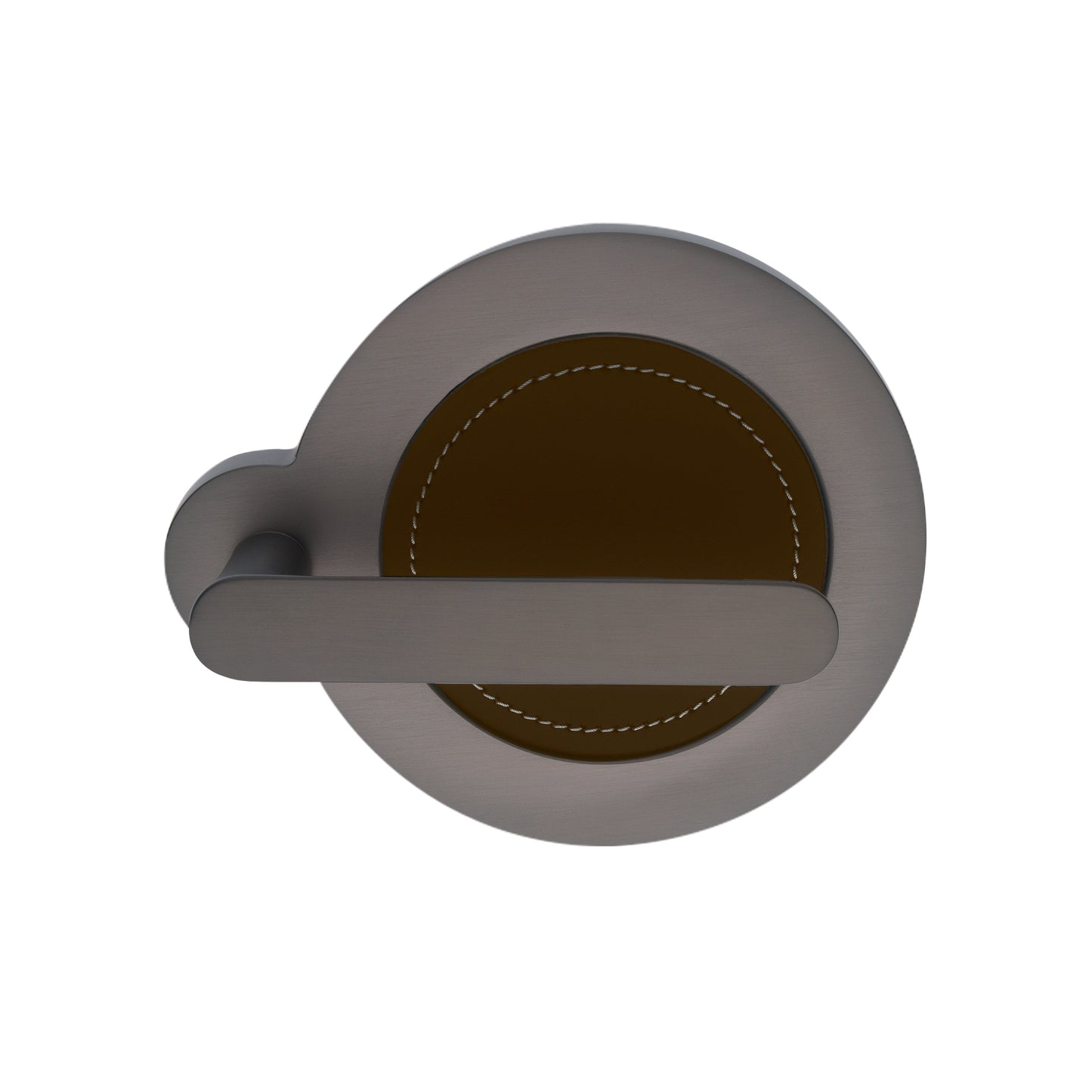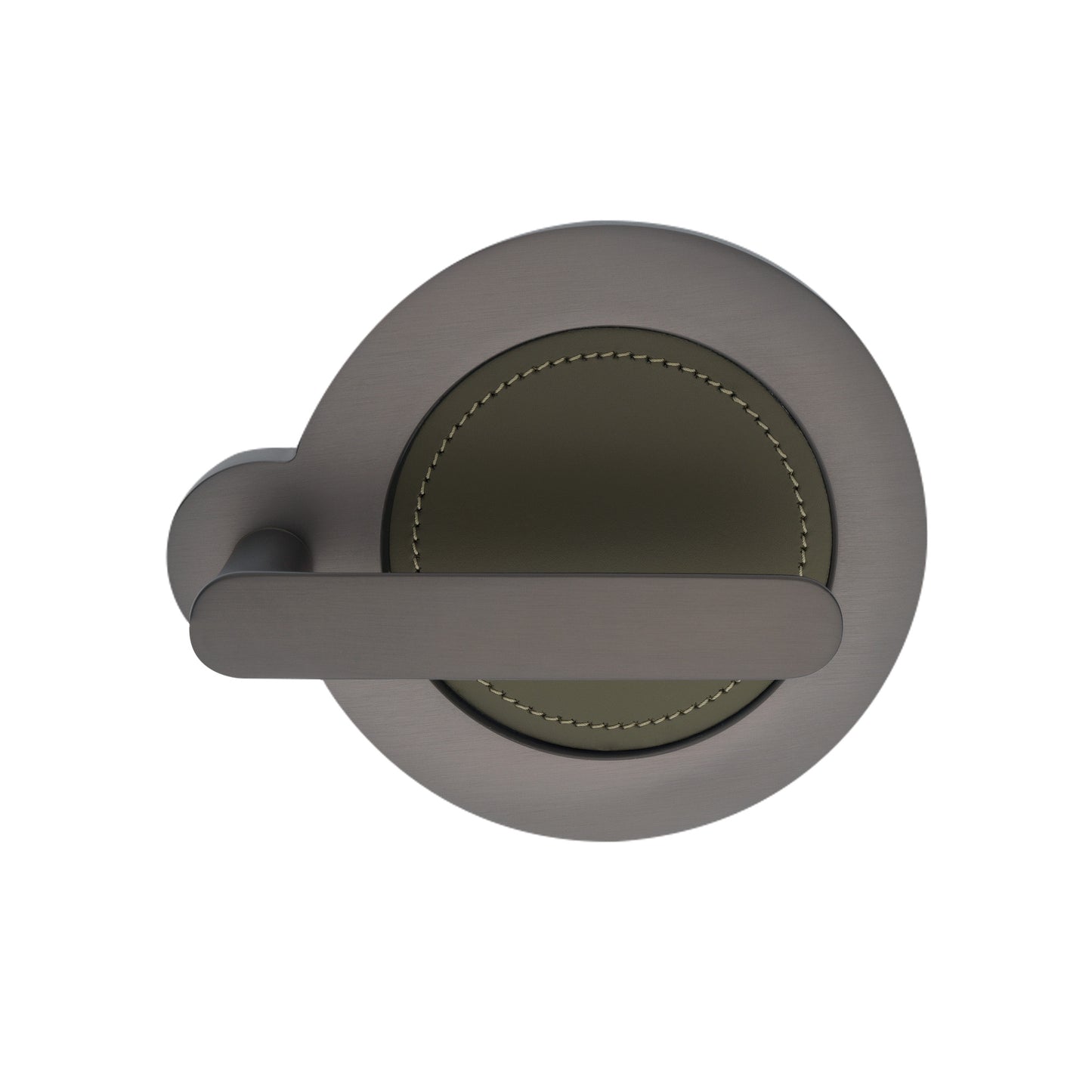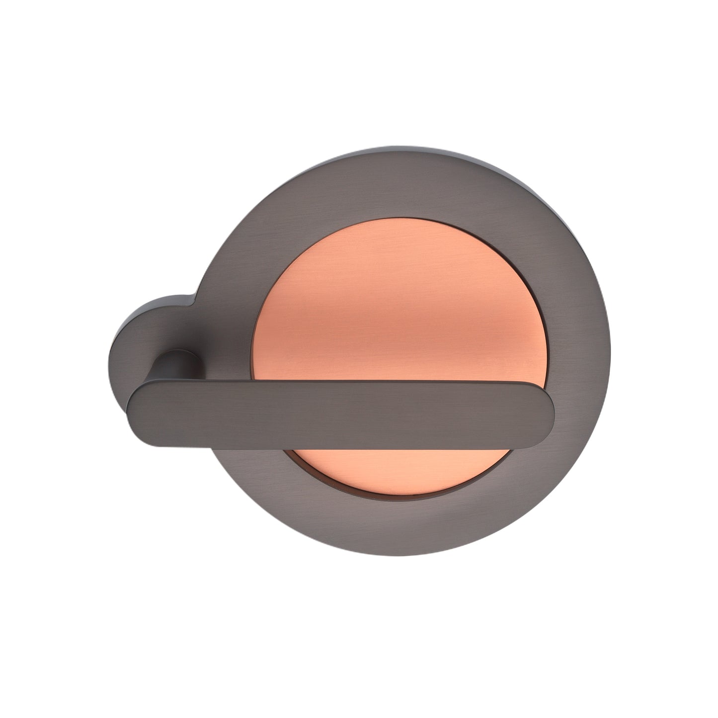 Saturn è una maniglia ideata per porte di ampie dimensioni. Si distingue per le misure importanti della rosetta composta da due dischi, uno esterno, da cui si sviluppa una piccola estensione a semicerchio e a cui è applicata la maniglia, e uno interno, personalizzabile in varie finiture.