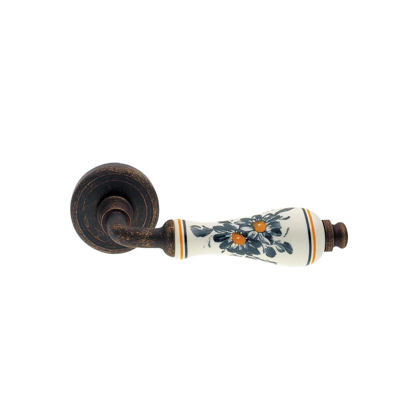 Valencia è una maniglia con struttura in ottone ed impugnatura in porcellana che si caratterizza per il suo stile retrò che, a seconda della finitura scelta, può essere inserita in ambienti country, romantici o anche in abitazioni di charme.